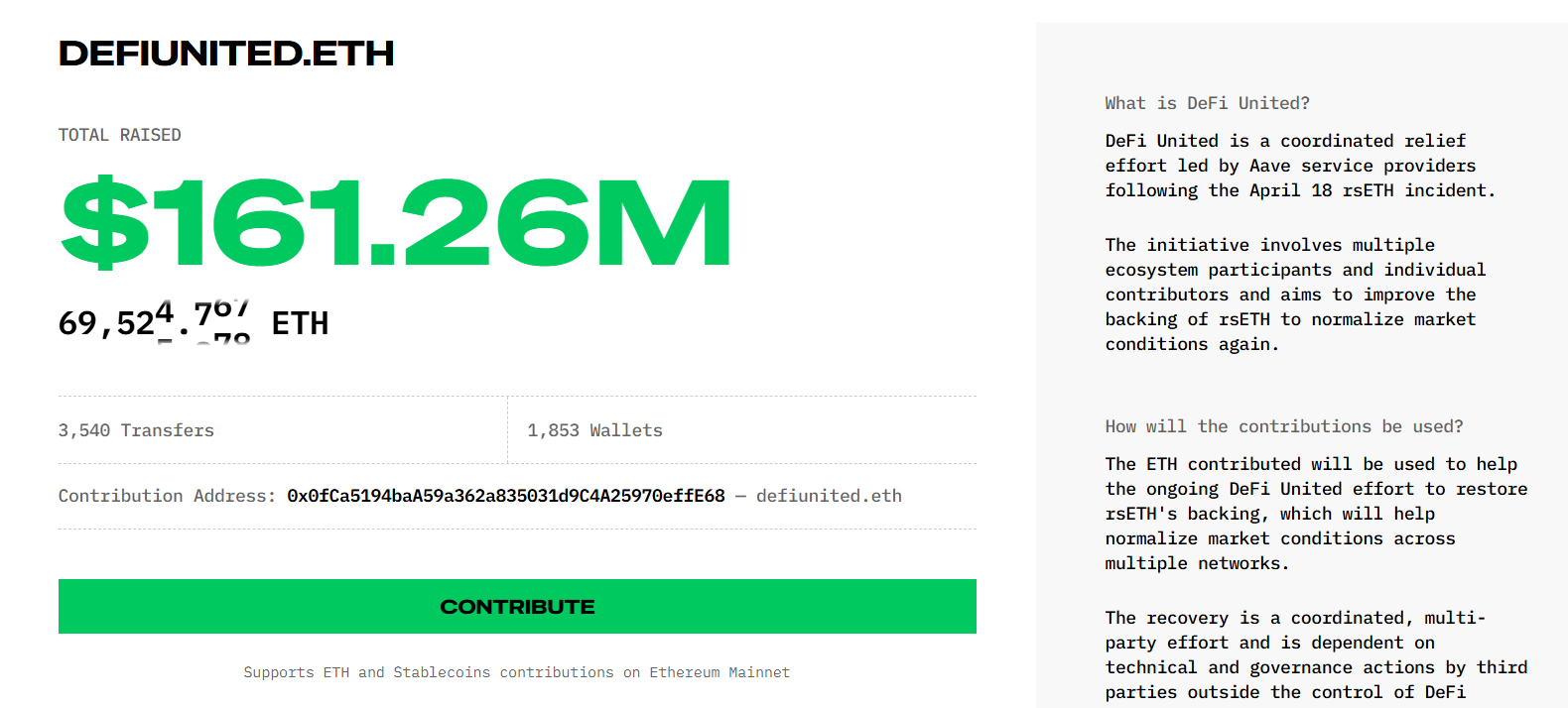 不過,剩餘缺口仍約 75,081 ETH,這也是「DeFi United」計畫希望共同填補的主要目標。