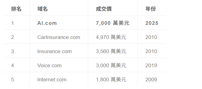 此案不僅成為數位資產投資的經典案例,也凸顯 AI 與加密產業交會下,頂級網域的戰略價值正被重新定價