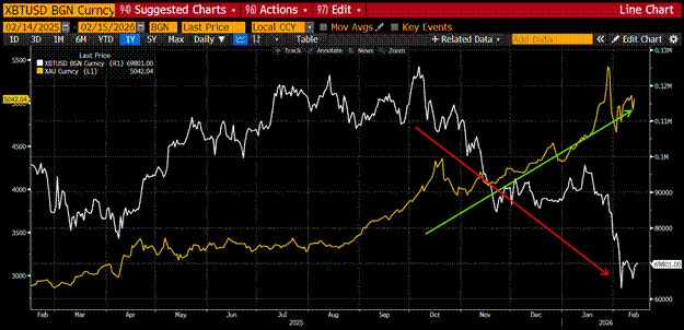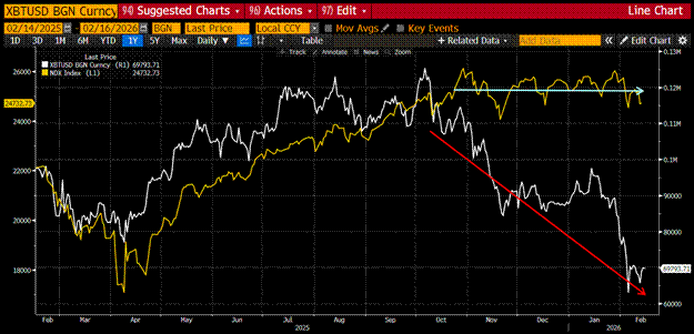 市場訊號與「通縮路徑」:比特幣背離科技股,被視為法幣信用警報器