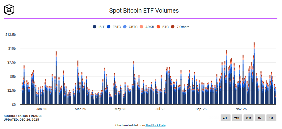 在全球市場年反彈帶動下,美國股市和貴金屬價格雙雙創下歷史新高,但比特幣卻未能跟上漲勢,假日期間交投清淡,價格在9萬美元下方徘徊