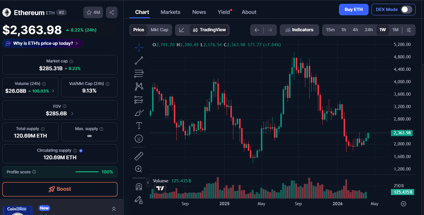 Bitmine Immersion Technologies 表示,過去一週已購入 71,524 枚以太幣,使總持倉提升至約 487 萬枚 ETH,占目前約 1.207 億枚流通量中的 4.04%。公司明確指出,其長期目標是取得全球 ETH 總供應量的 5%,意味著仍有進一步加碼空間。此次買入亦創下自 2025 年 12 月以來最快的累積速度。