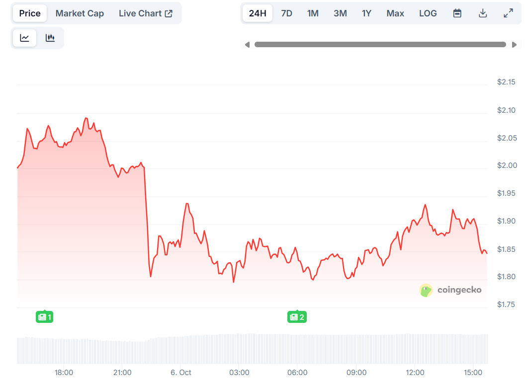 在 0xngmi 發表上述言論後,根據鏈上數據顯示,Aster 的原生代幣 ASTER 的價格從 2 美元跌至 1.8 美元。這一代幣在 9 月中旬推出,曾在 9 月底短暫達到 2.4 美元的高點。