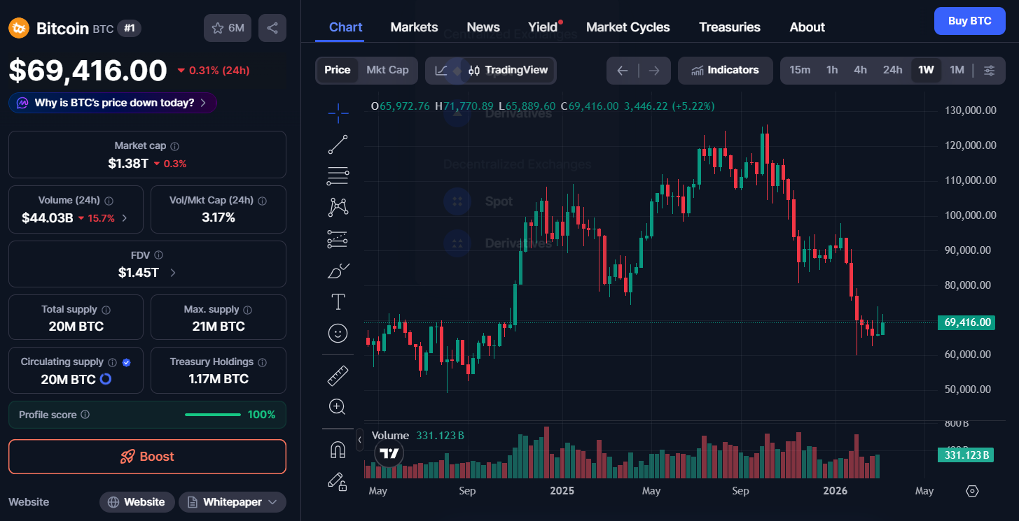 不過此番言論迅速遭到多位業界分析師反駁,直言該價格除非出現全球流動性崩潰、核戰或網路全面停擺等極端事件才可能發生;目前 BTC 仍維持在 7 萬美元附近震盪,市場對未來走勢分歧明顯