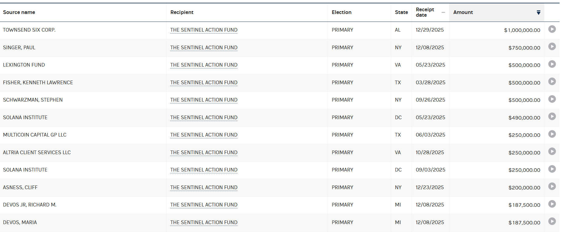 Sentinel Action Fund 的資金來源也引發關注。根據公開資料,Solana Institute 已向該 PAC 捐贈約 75 萬美元,而加密風投機構 Multicoin Capital 則投入約 25 萬美元。此外,傳統金融界重量級人物,如黑石集團(Blackstone)CEO Stephen Schwarzman 與 Fisher Investments 董事長 Kenneth Fisher 亦名列捐款人名單,顯示加密議題已吸引跨產業資本共同參與。